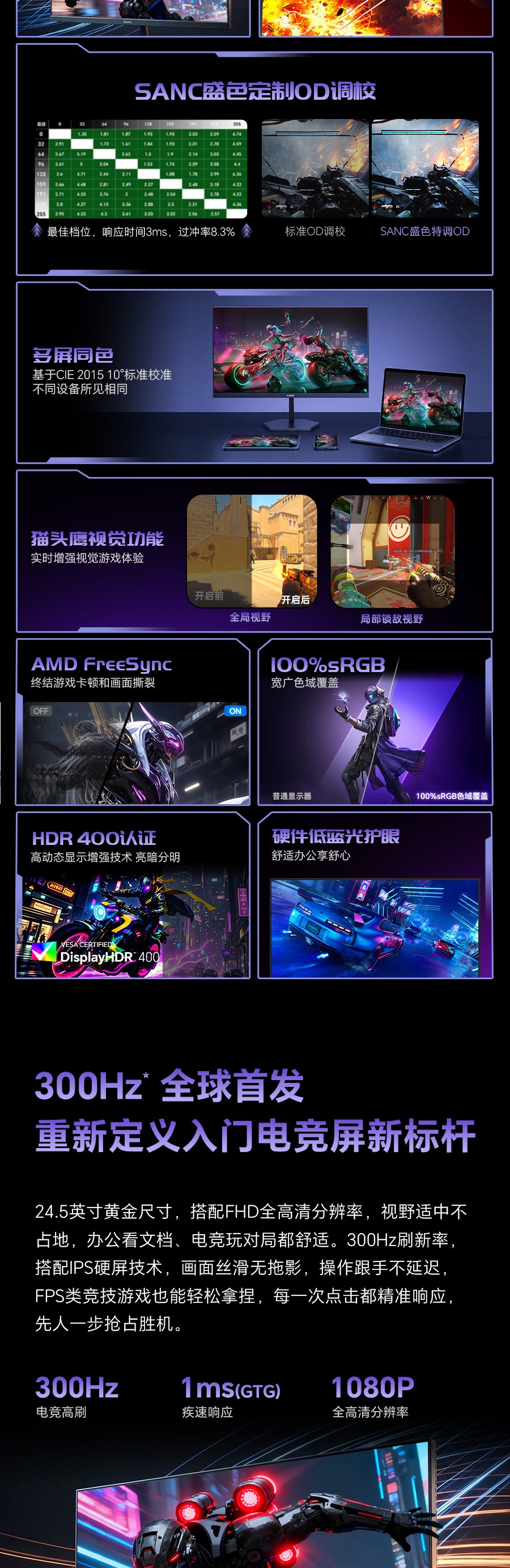 DP1.4 1920*1080 280Hz   8bit  超频300Hz