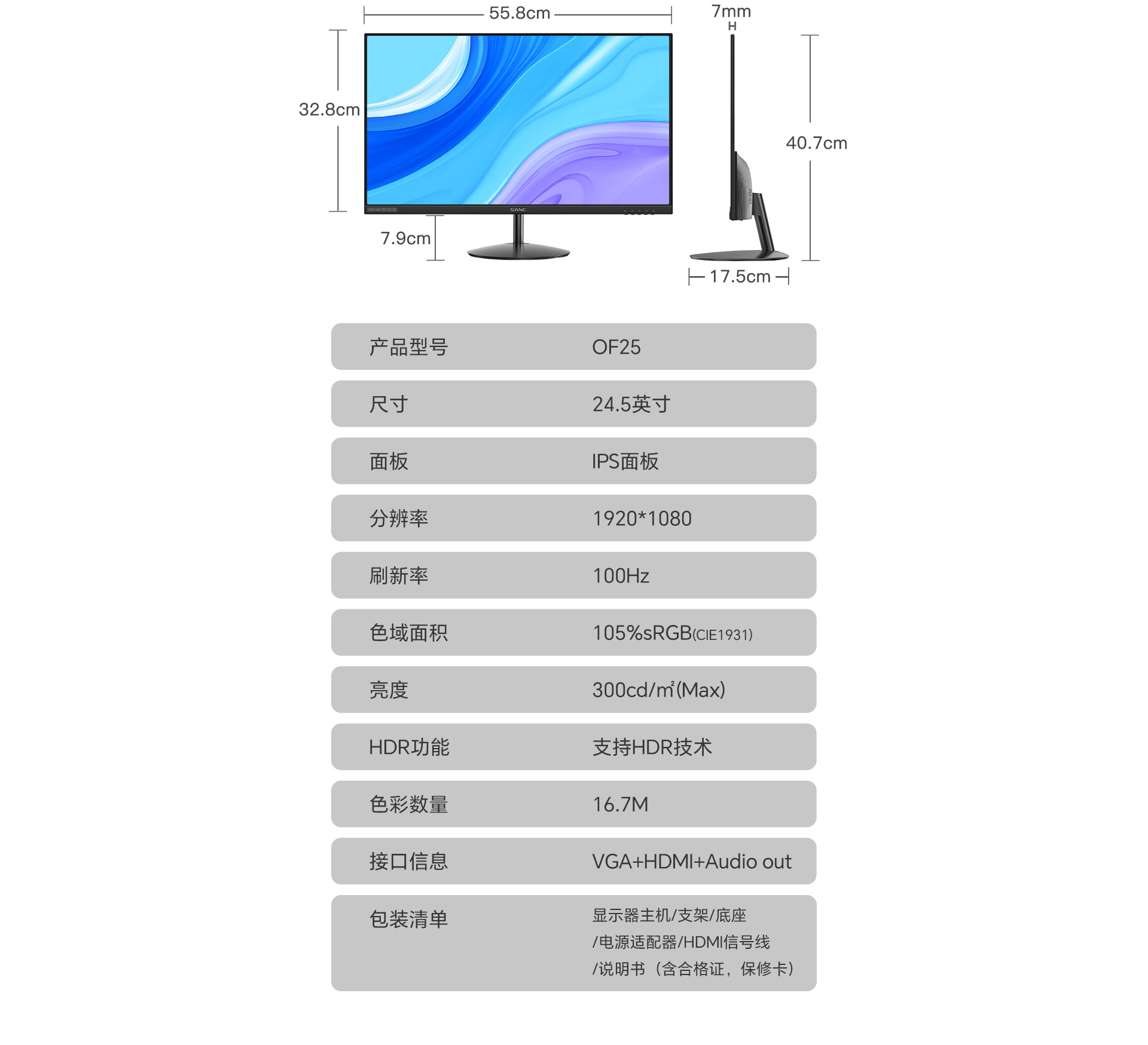 色域面积:105%sRGB
