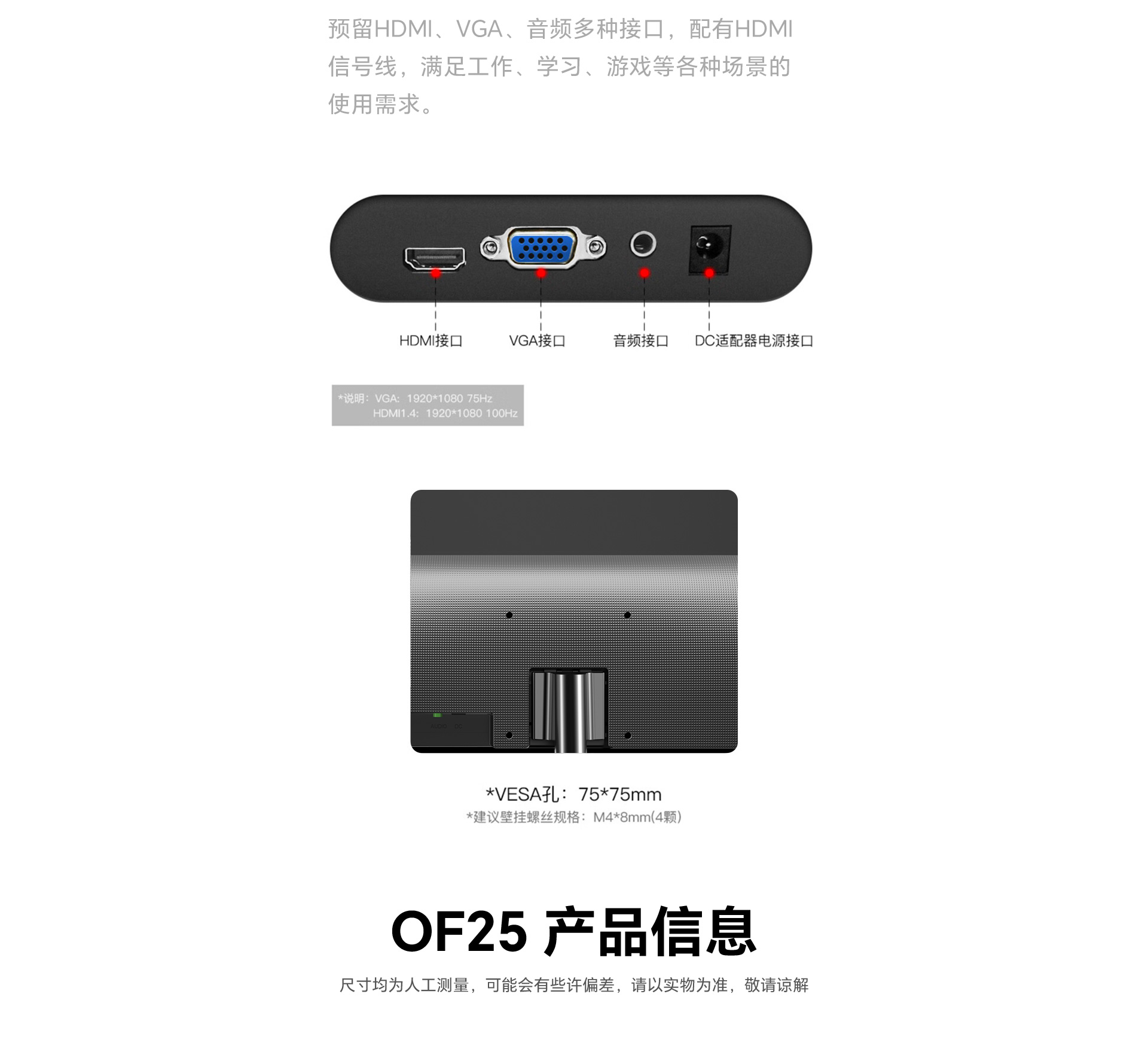 VESA孔位:75*75mm