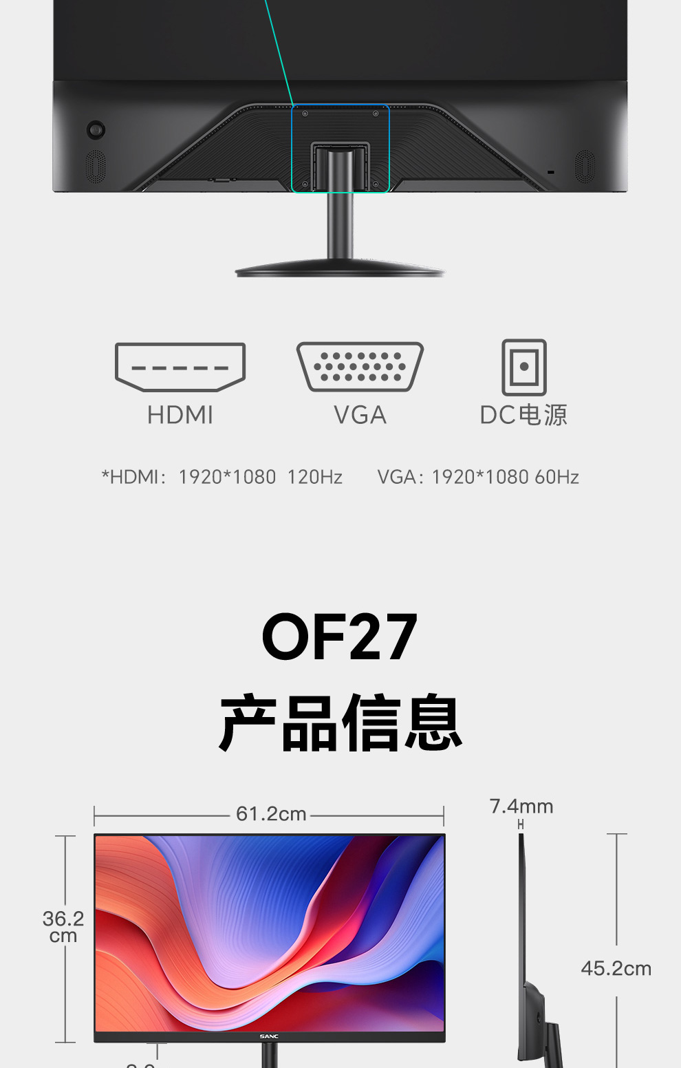 VESA孔位:75*75mm