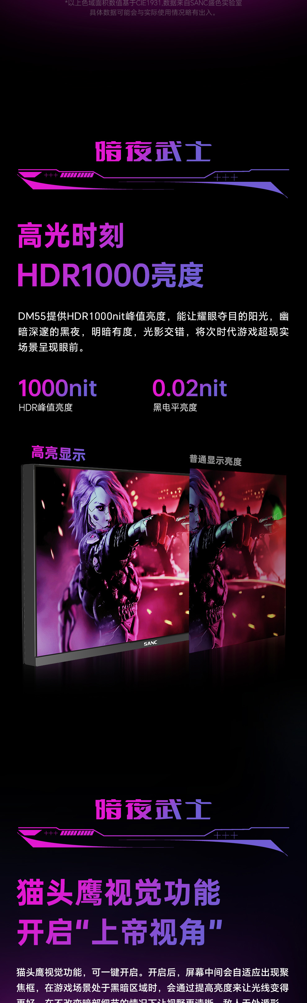 峰值亮度:1000cd/m2