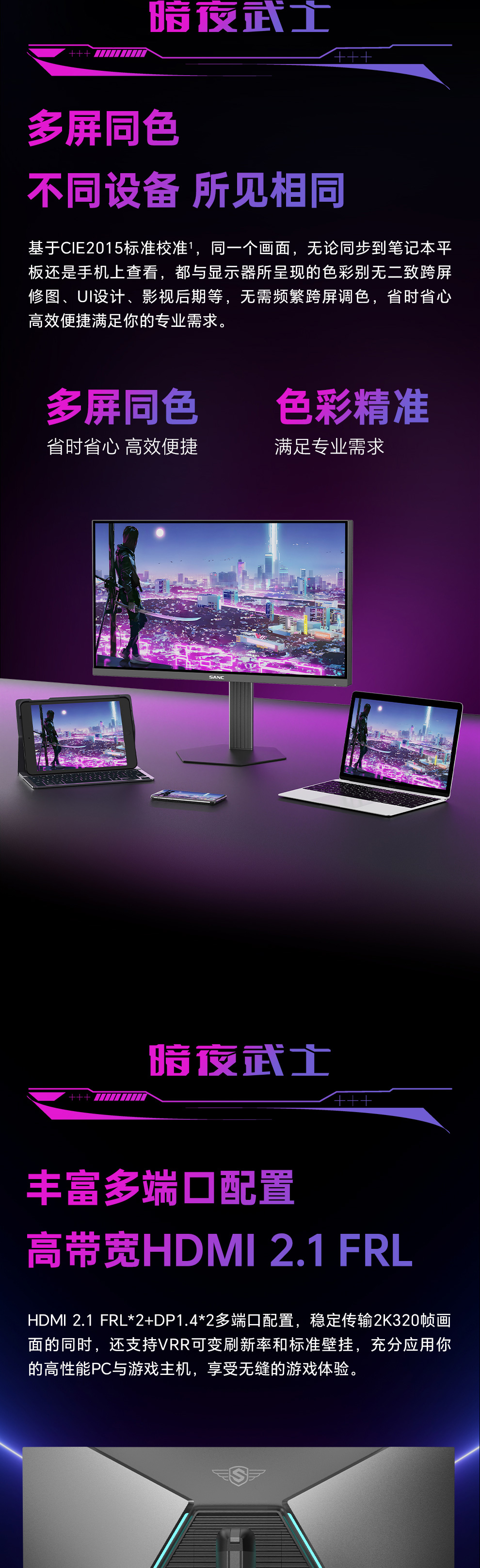 HDMI 2.1 FRL:  2560*1440 300Hz   8bit