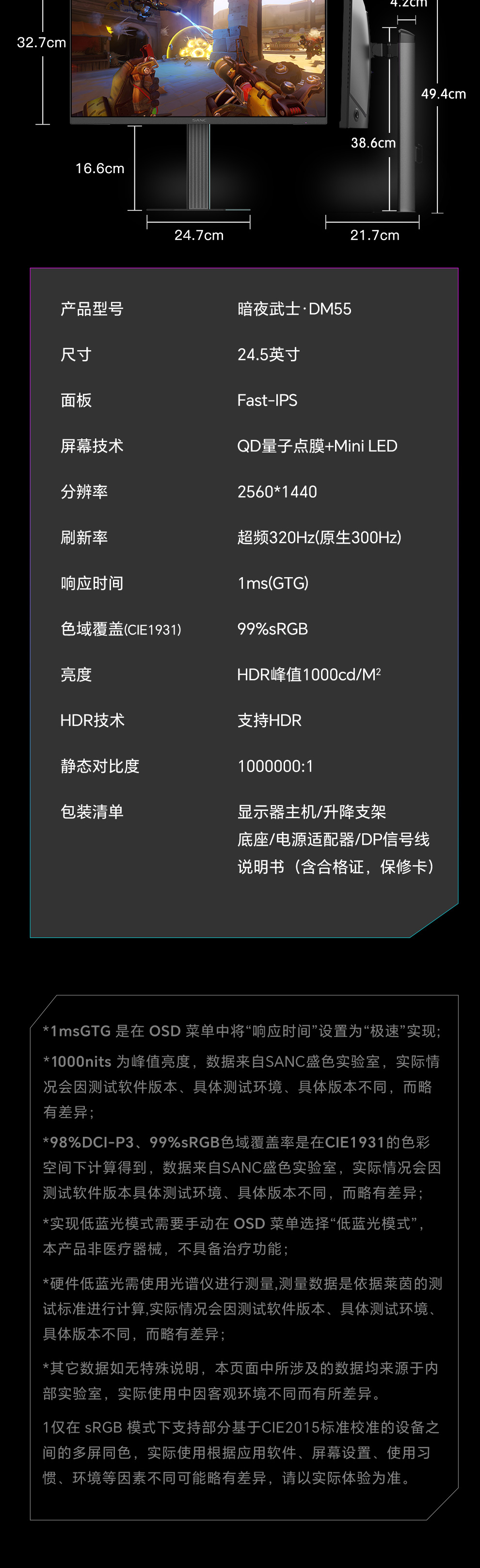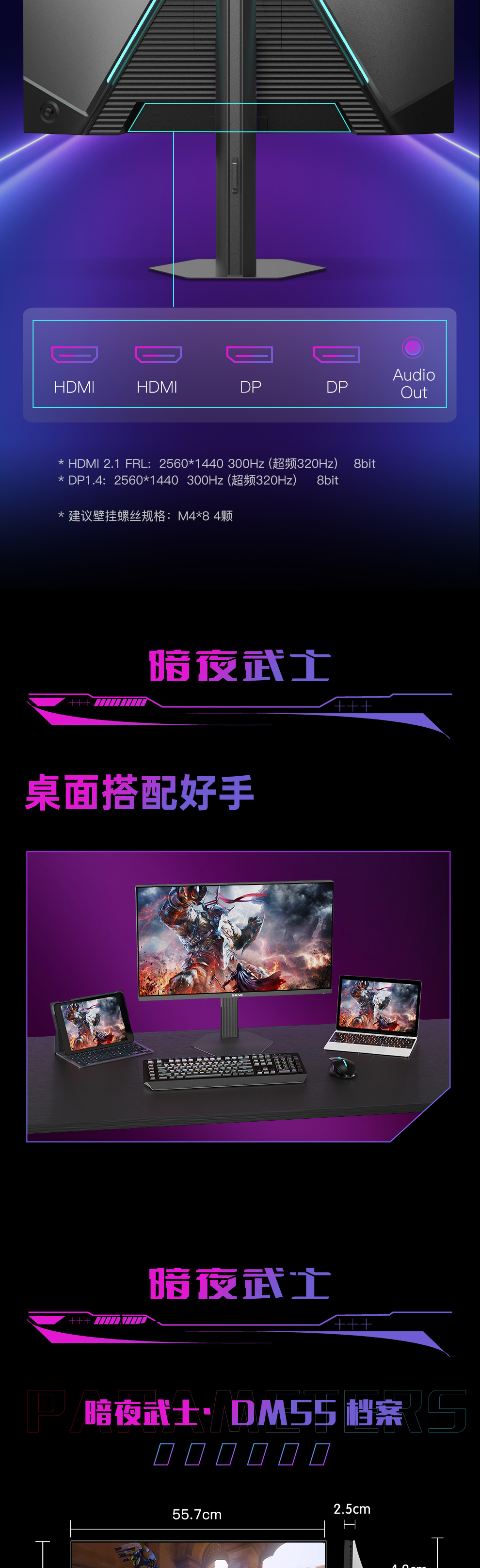 DP1.4:  2560*1440  300Hz    8bit