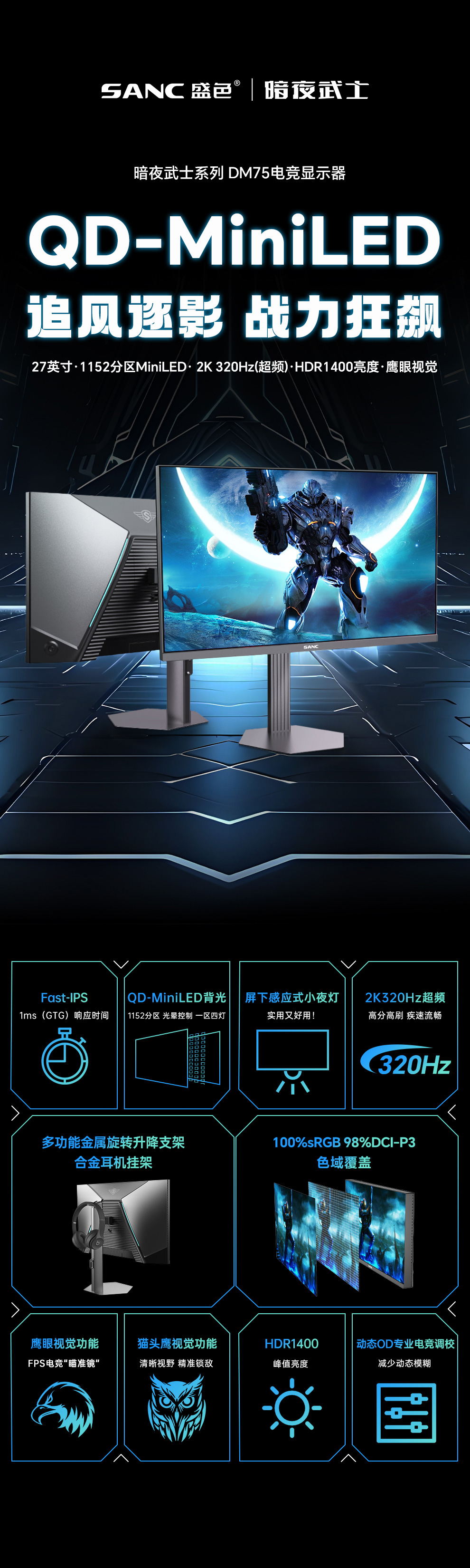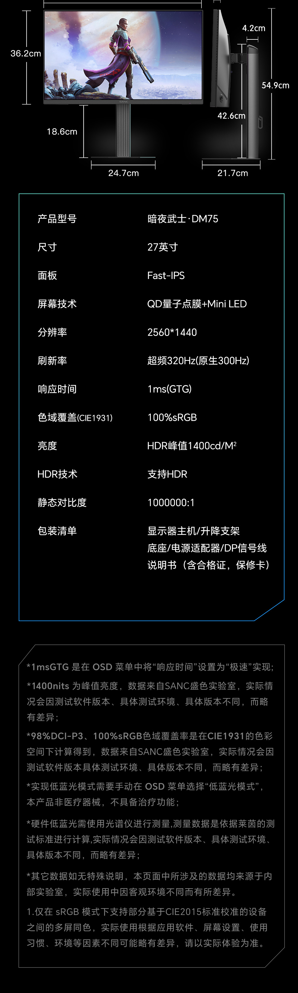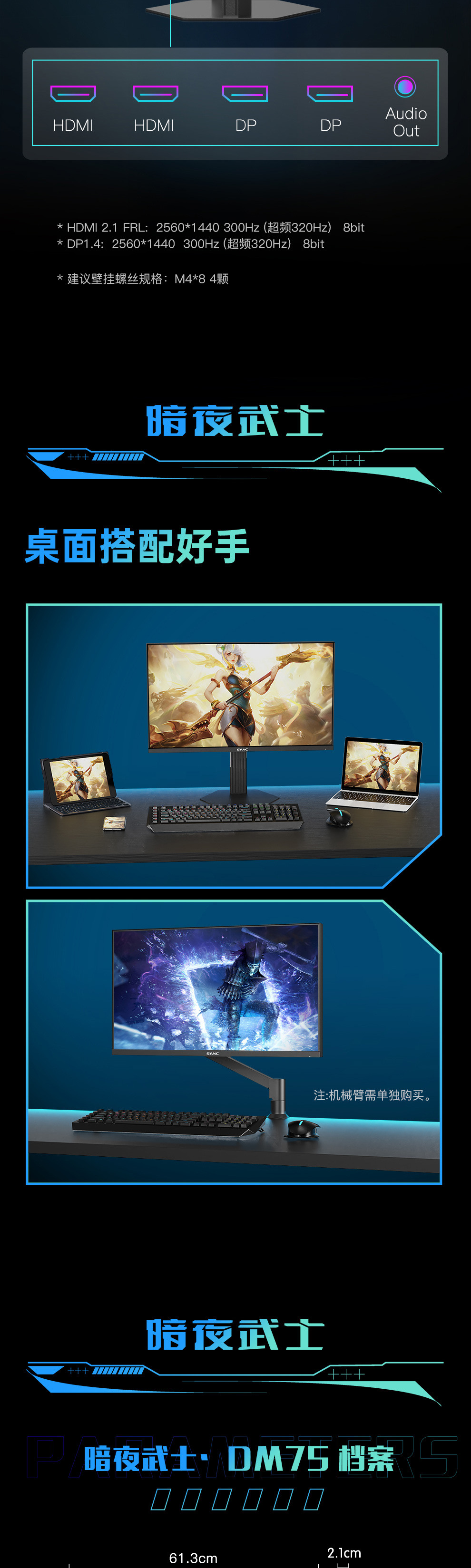 DP1.4: 2560*1440 260Hz 10bit(8bits+FRC)