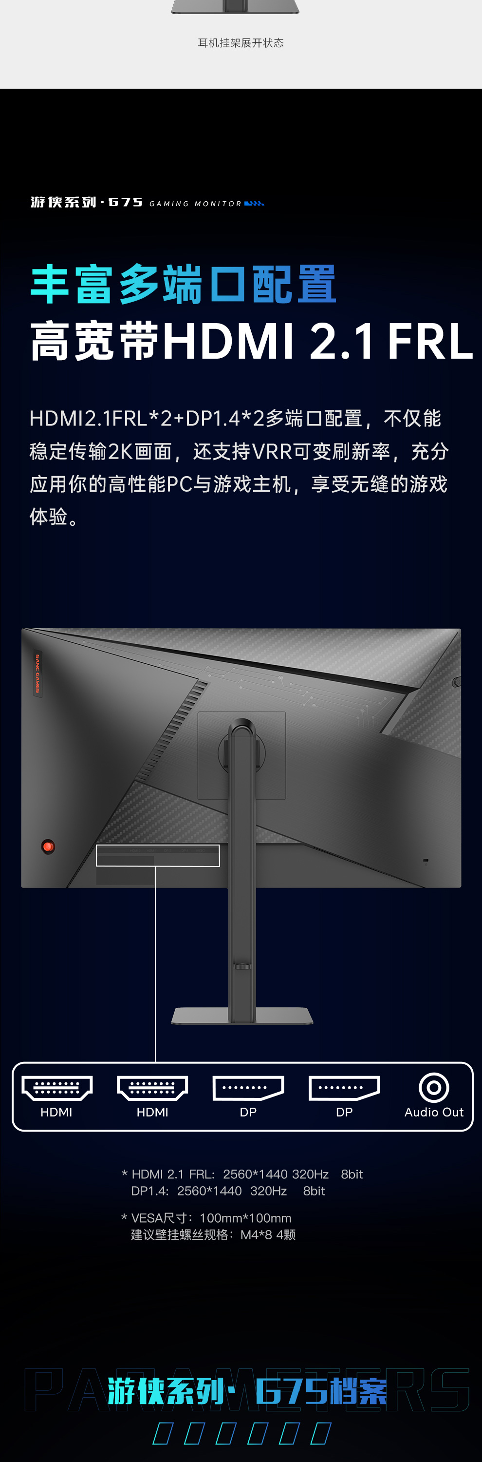 HDMI 2.1 FRL: 2560*1440 320Hz 8bit