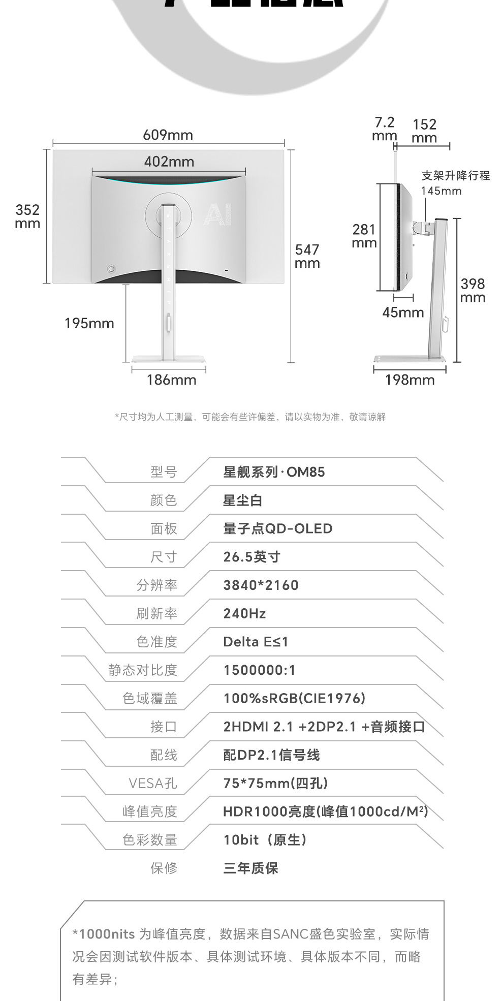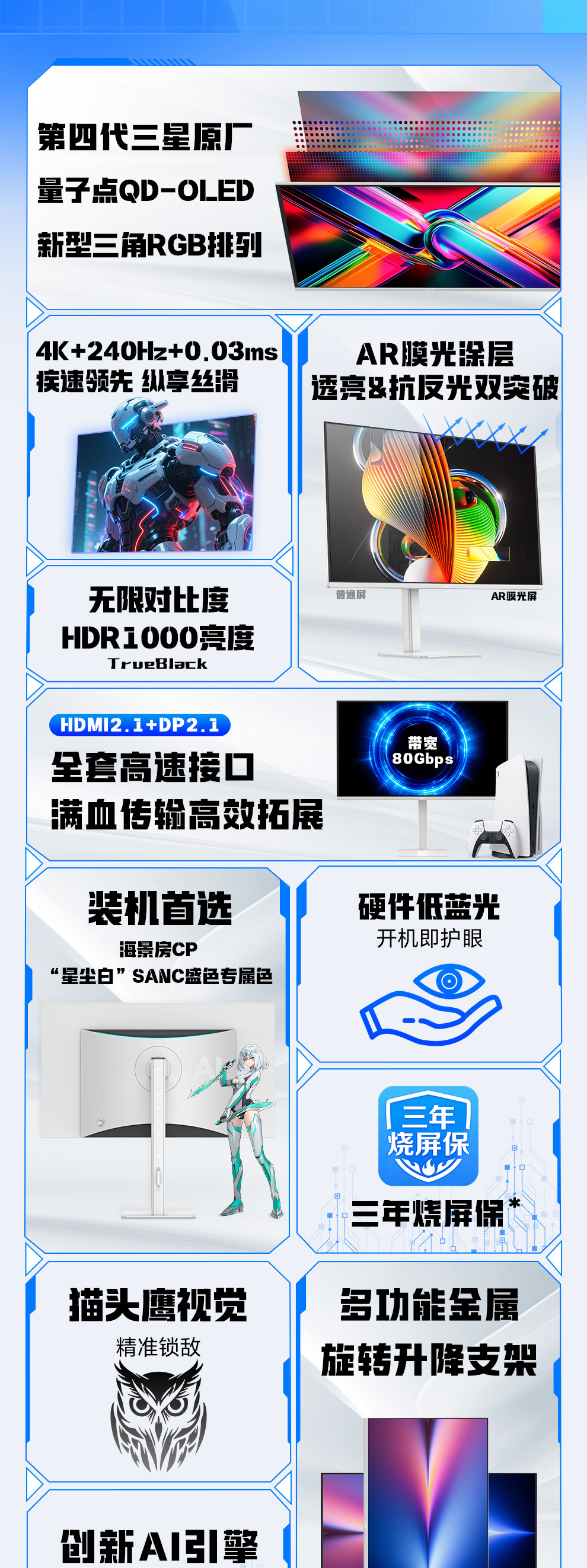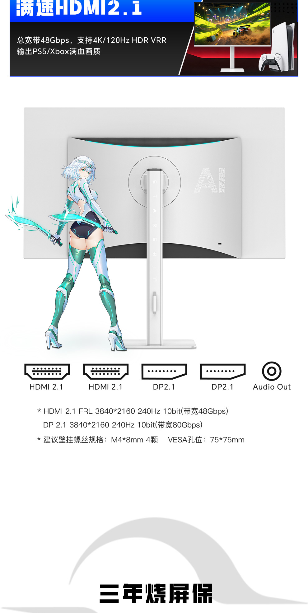 输出(入)接口说明: 2*HDMI 2.1+2*DP 2.1+Audio out
