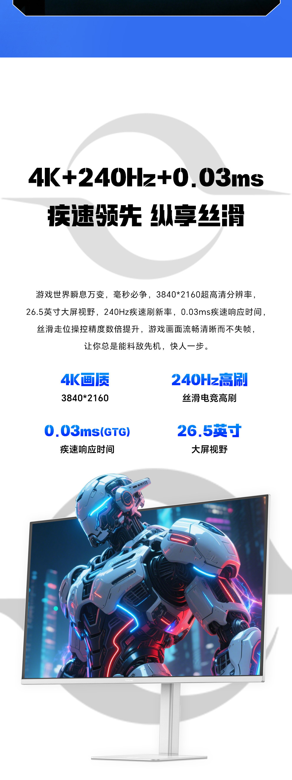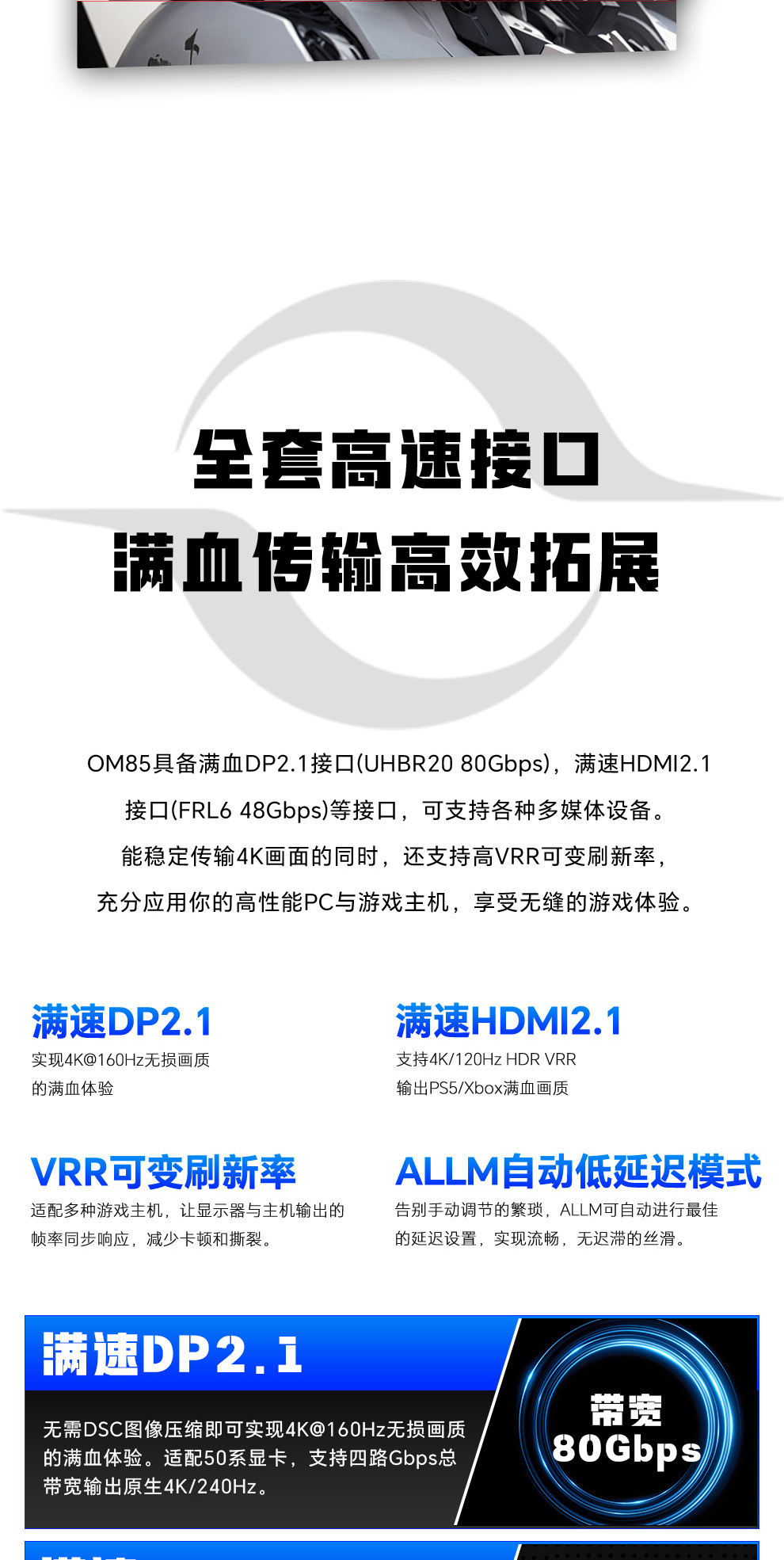 DP 2.1:3840*2160 240Hz 10bit (带宽80Gbps)